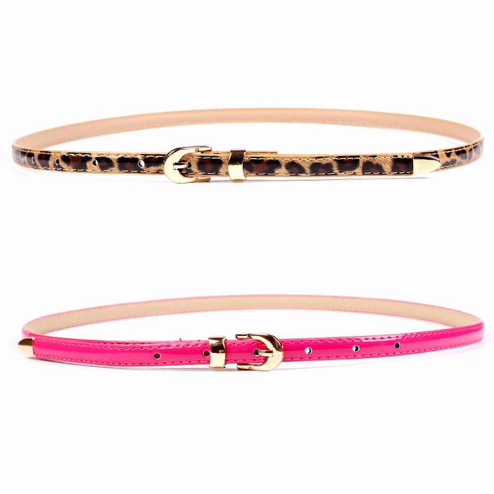Модный тонкий кожаный пояс с металлической пряжкой