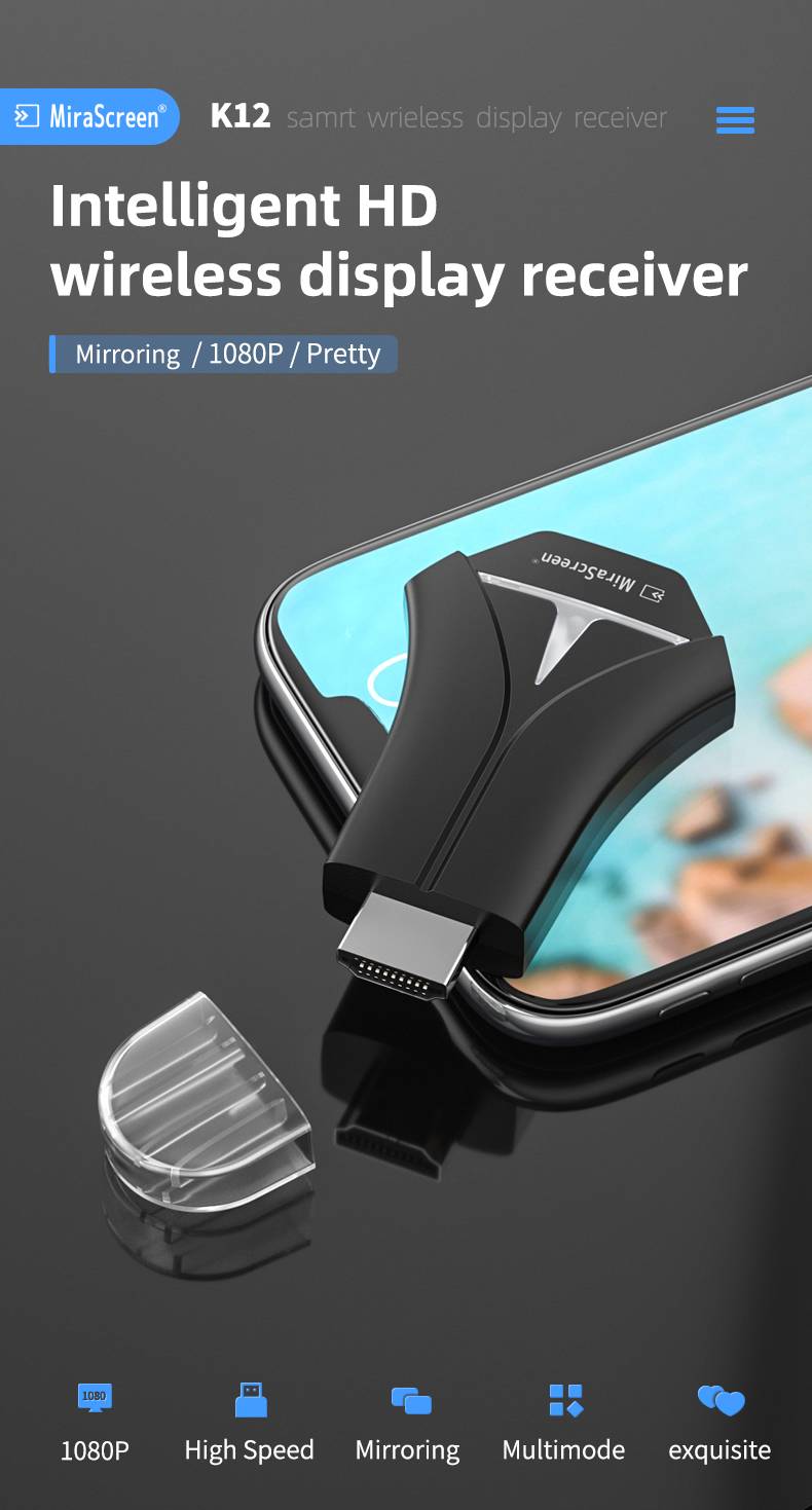 Новинка 2020, Mira screen K12, ТВ-приставка, Wifi, дисплей, приемник, HDMI, адаптер, потоковое литое зеркало, экран Airplay, Miracast, Anycast Airmirror