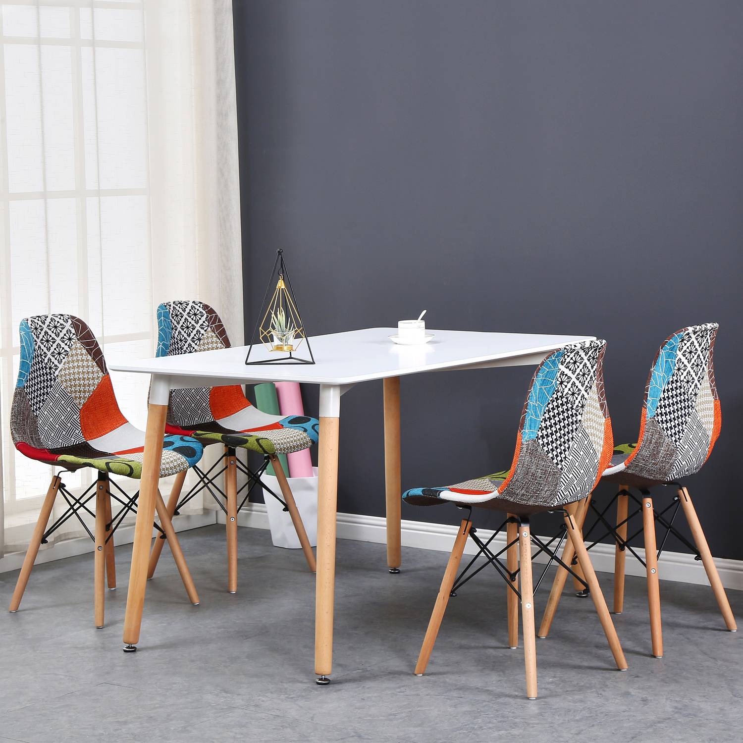 Эти стулья в стиле пэчворк очень популярны и могут использоваться как обеденные стулья, офисные стулья или для любых комнат в доме. Они очень удобные и прочные. Обязательно заметьте и оцените. Эти стулья изготовлены из прочного металла, дерева, ткани и АБС-пластика. АБС-пластик является самой сильной формой пластика, и если вы нажимаете до его предела, он согнется, но не сломается.