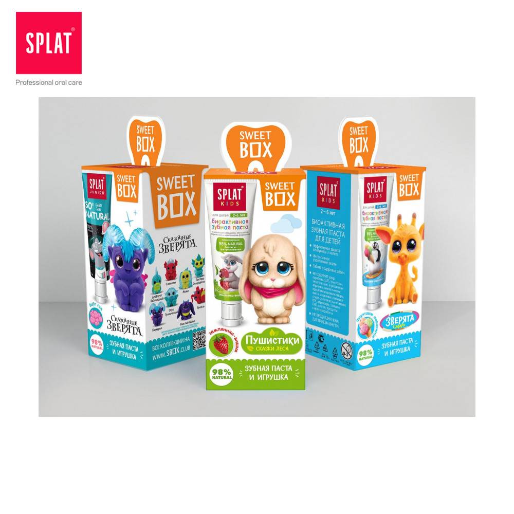 Sweet Box с детской зубной пастой – это защита от кариеса и забота о дёснах! Идеально для родителей, которые хотят порадовать своего ребёнка не только качественной игрушкой, но и позаботиться о его здоровье.