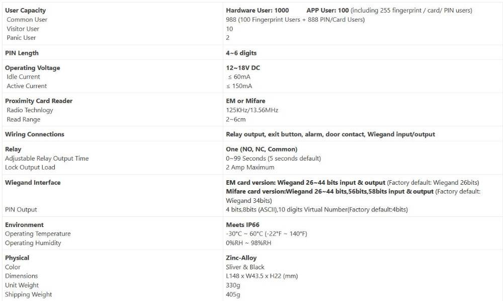>Несколько режимов доступа: смартфон, отпечаток пальца, карта, PIN