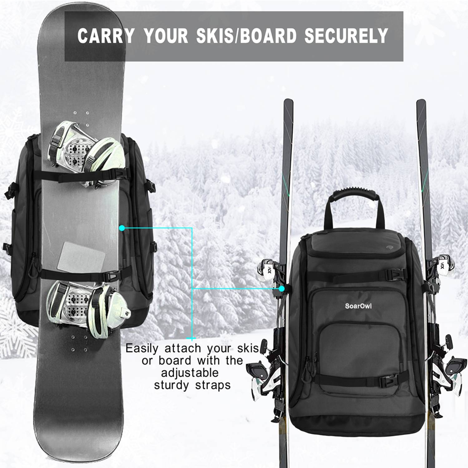 【Element эксклюзивные особенности 】толстый силиконовый мягкий ремень для рюкзака с регулируемой системой никогда не впивается в плечи, и он умудряется оставаться на спине независимо от того, сколько вы двигаетесь. Ремень рюкзака оснащен шнурком для лыжного полюса, который более удобен для путешествий. Кнопки регулировки ремни на передней и левой и правой сторонах лыжной сумки можно использовать, чтобы положить лыжи, будь то Двойная доска или одна доска, вы можете легко забрать его.