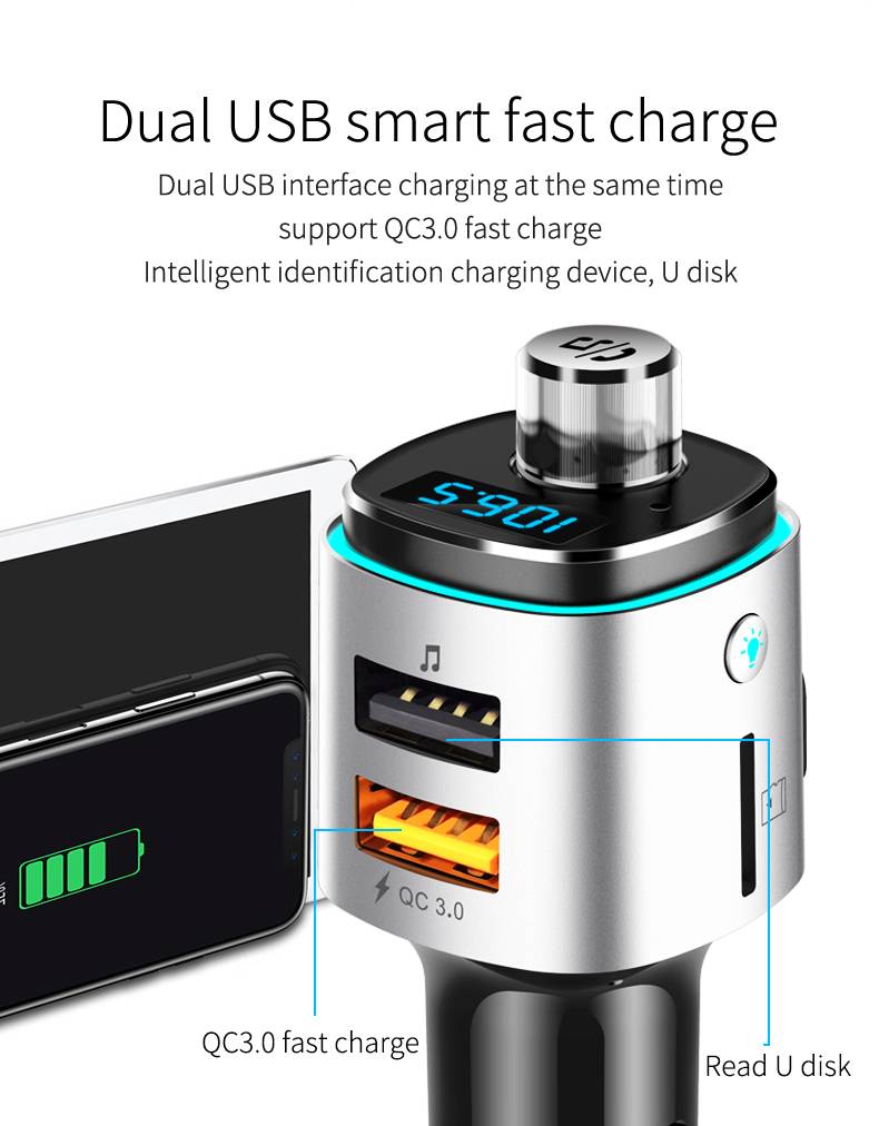 Автомобильный fm-передатчик беспроводной Bluetooth 5,0 FM радио модулятор комплект PD QC3.0 быстрое зарядное устройство hands-free вспомогательный аудио mp3-плеер