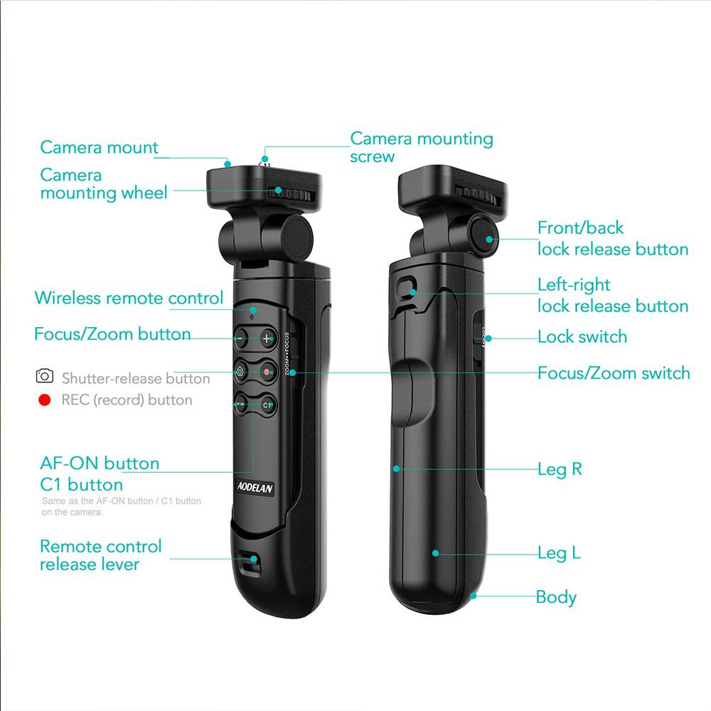 Рукоятка штатива AODELAN с пультом дистанционного управления TG-1-это рукоятка, которая позволяет снимать во время работы камеры с беспроводным пультом дистанционного управления. Ножки также могут быть расширены из части рукоятки для использования в качестве штатива.