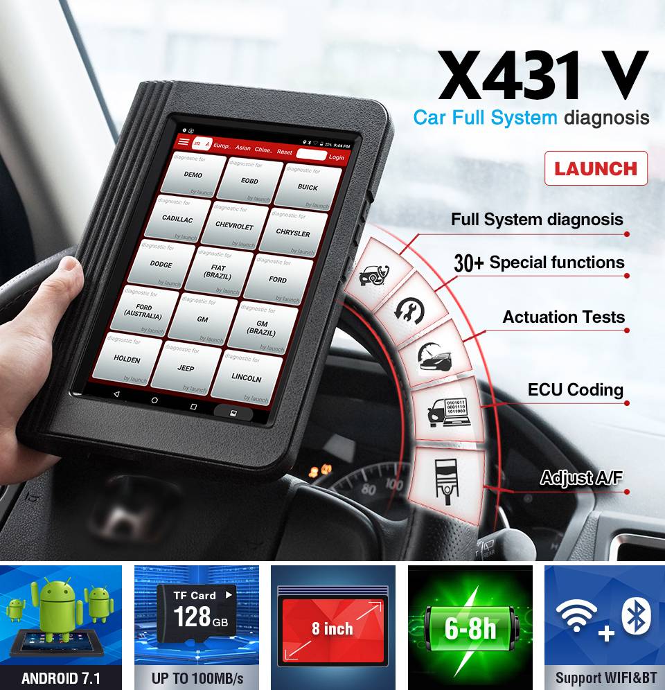Поддерживает 10000 + моделей автомобилей из Америки, Европы, Азии (включая российские модели автомобилей, китайские модели автомобилей, индийские модели автомобилей, малайзийские модели автомобилей, австралийские модели автомобилей, бразильские модели автомобилей, латиноамериканские модели автомобилей и другие национальные модели, включая автомобили, внедорожники, minvans, 12v светильник-грузовики, бензиновые автомобили и дизельные автомобили. (Не будет преувеличением сказать, что LAUNCH X431 V является самым широко распространенным продуктом покрытия транспортных средств в мире)