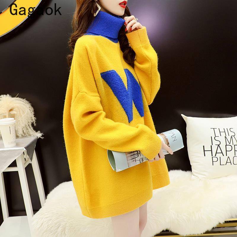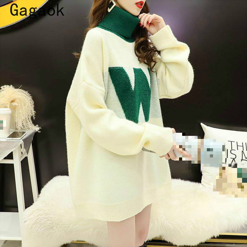 Женский свободный свитер в стиле Харадзюку Gagaok, вязаный Топ на весну и осень, модный длинный пуловер размера плюс