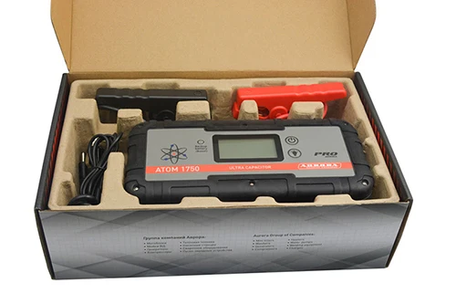 Конденсаторное пусковое устройство АТОМ 1750 для профессионального использования. ATOM 1750 ULTRA CAPACITOR – первое конденсаторное пусковое устройство AURORA. В качестве источника для запуска двигателя устройство использует энергию пяти ультра-конденсаторов ёмкостью 350Ф каждый. Мощности устройства хватит для запуска бензиновых двигателей объёмом до 5л и для запуска дизельных моторов до 2.0л.