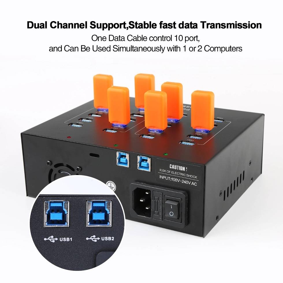 Этот концентратор промышленного класса USB 3,0-это Суперскоростной концентратор USB 3,0 с 20 портами, который обратно совместим с USB 2,0 и USB 1,1. Концентратор совместим со спецификацией USB 3,0 и может расширить один порт USB 3,0 на 20 высокоэффективных портов USB 3,0. Применяются для поддержки 20 правоохранительных чекеров для одновременного применения синхронизации данных и зарядки, для зарядки и синхронизации файлов для камеры тела политики. Он может обеспечить максимальный зарядный ток 1000 мА на порт. Он оснащен защитой от перенапряжения и перегрузки по току для обеспечения безопасности. Большинство клиентов также используют эту модель для ремонта мобильный телефон/мобильный телефон ремонт телефонов.