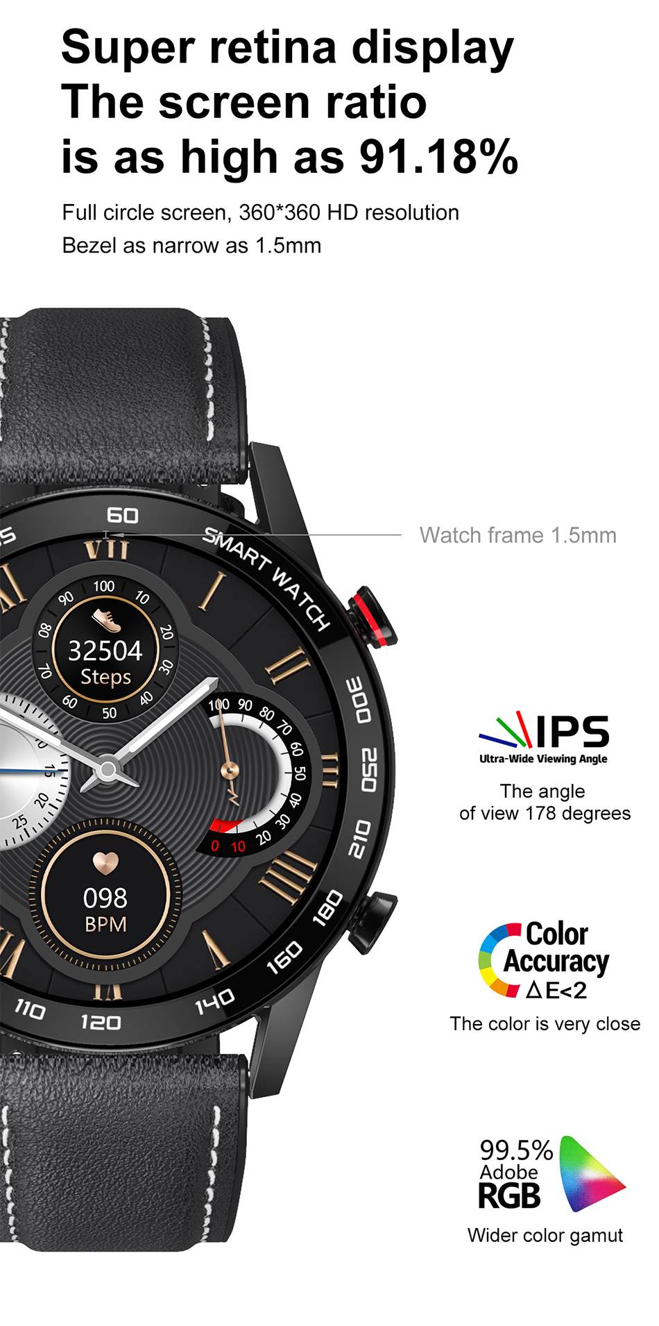 Полнокруговой экран, рамка с разрешением 360*360 HD, толщина 1,5 мм