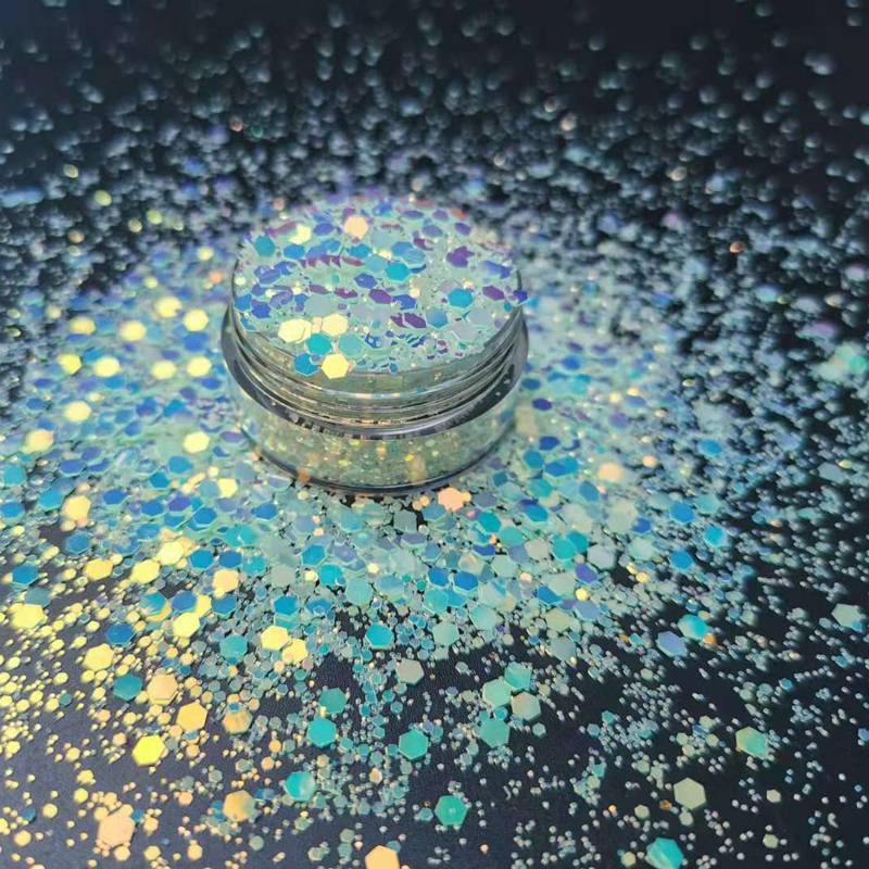10 г/упак. светящиеся Блестки для ногтей объемные блестки 3D флуоресцентные Блестки для ногтей Светящиеся в темноте шестигранные полировальные наконечники смешанного размера 001