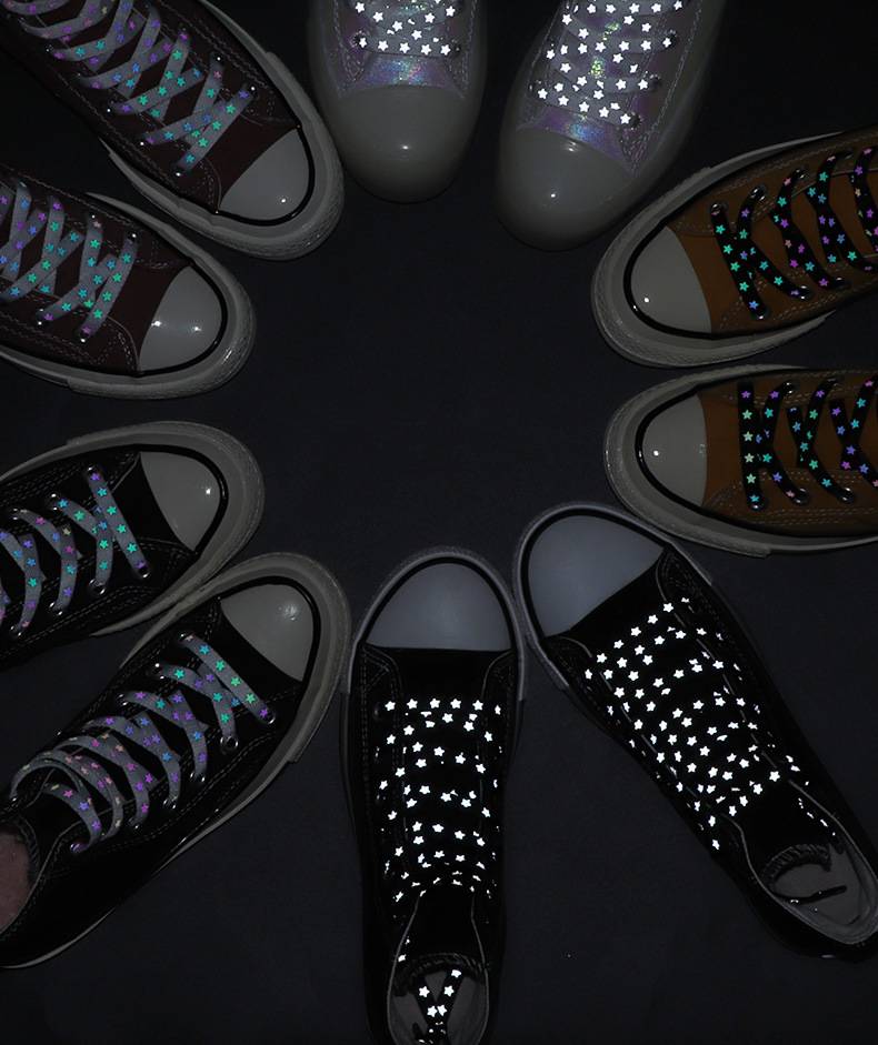 Новый голографические светоотражающие шнурки для обуви, классные кеды, беговые кроссовки, мужская обувь с кружевом, способный преодолевать Броды для взрослых детей спортивный белый цвет с рисунком звезд, шнурки строки