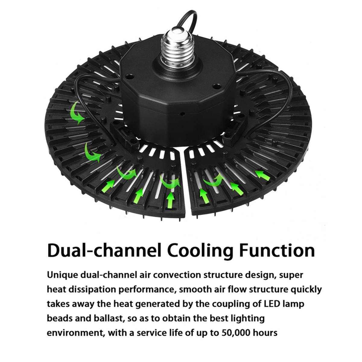 -Хорошая производительность рассеивания: двухканальная конструкция конвекции воздуха, супер теплоотдача. Гладкая воздушный поток структура быстро отводит тепло, вырабатываемое соединение светодиодный лампы и балласт, таким образом, чтобы можно было получить лучшие условия освещения со сроком службы до 50000 часов.