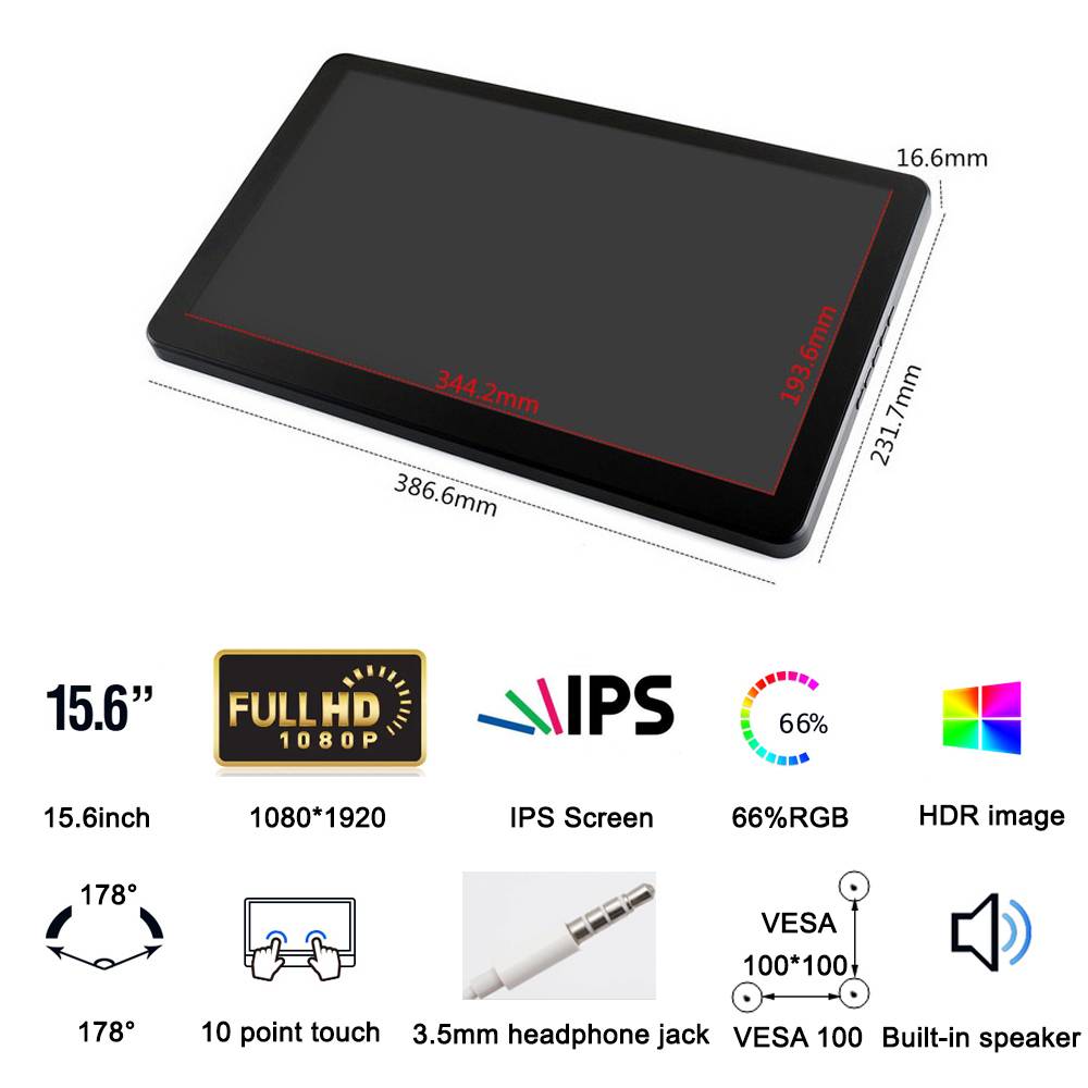 15,6 дюймов IPS емкостный сенсорный экран 1920x1080 разрешение для контроля уровня сахара в крови с закаленное стекло панели 3,5 мм разъем для наушников и встроенные динамики