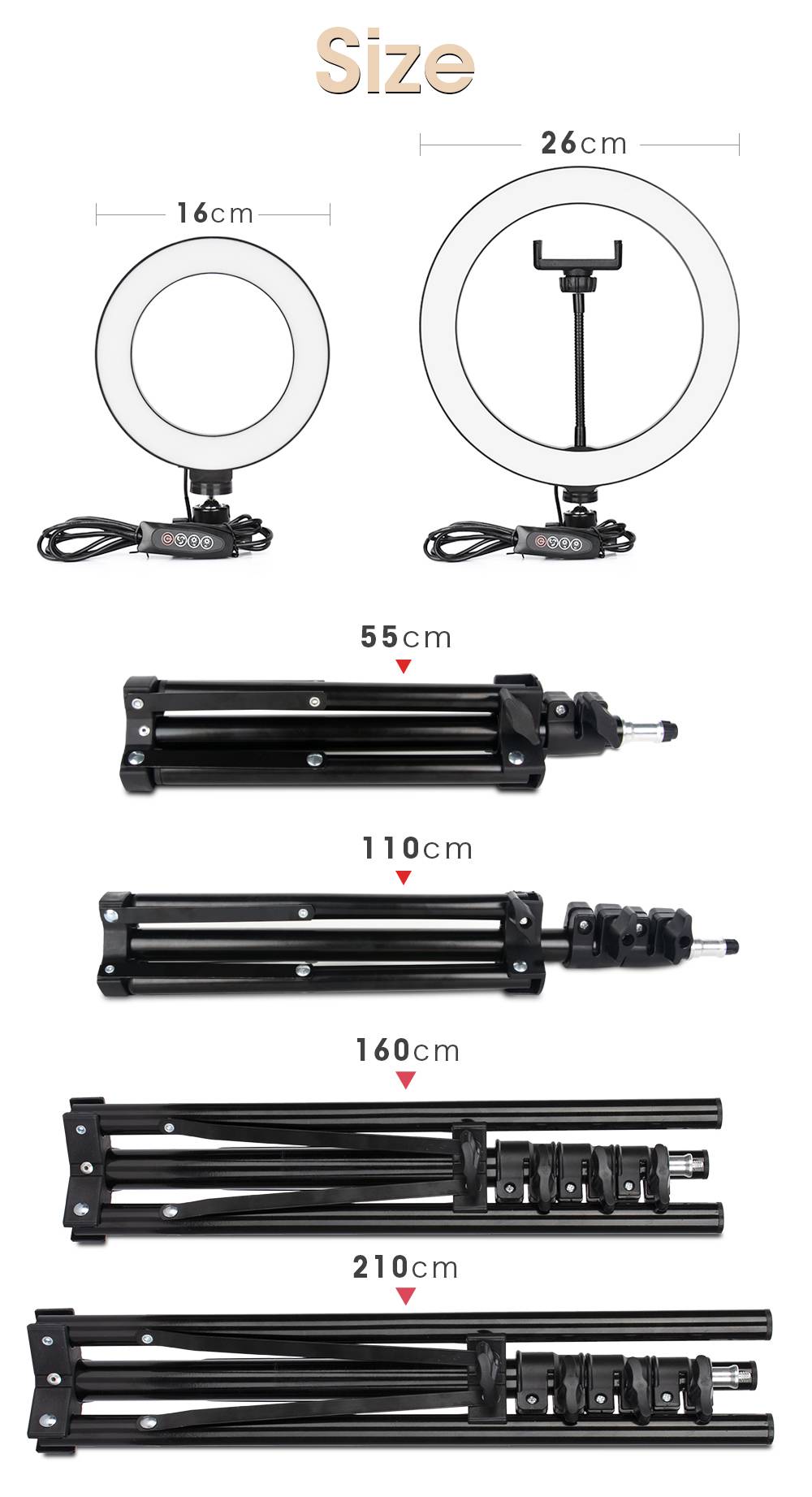 【 16 см кольцевое освещение 】no мобильный телефон клип в середине лампы.