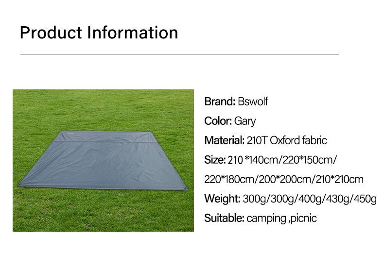 Товар: переносной Коврик для кемпингаМатериал: 210T ткань Оксфорд PU2000Размер: 210x140 см (82x55 дюймов),220x150 см (86x59 дюймов),220x180 см (86x70 дюймов),200x200 см (78x78 дюймов),210x210 см (82x82 дюйма)Размер упаковки: 16x15x5cmЦвет: синий, GaryУпаковка:1 х Коврик1 х мешок для хранения