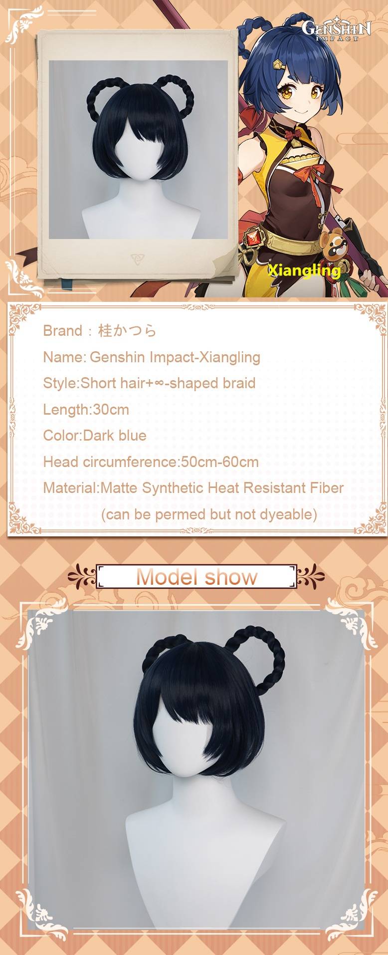 UWOWO игра Genshin Impact Xiangling изысканный деликатес косплей парик шеф-повара de Cuisine 30 см темно-синие короткие волосы