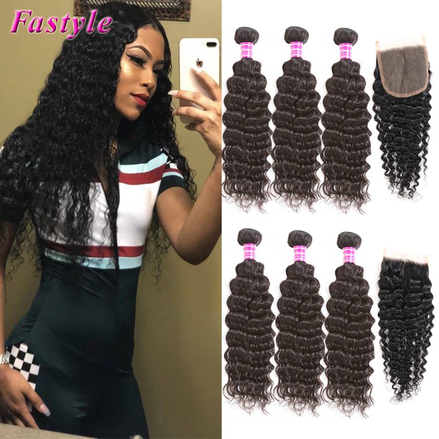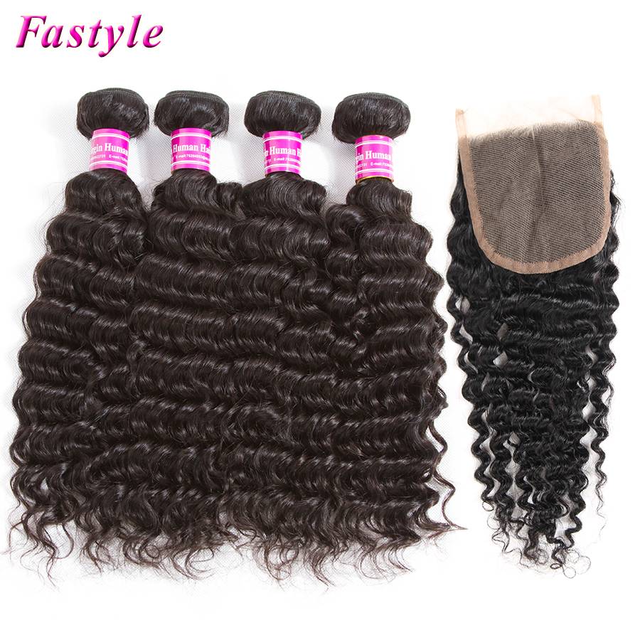 Бразильские пряди человеческих волос с закрытием естественного цвета глубокая волна пряди с закрытием оптовые предложения наращивание волос Fastyle