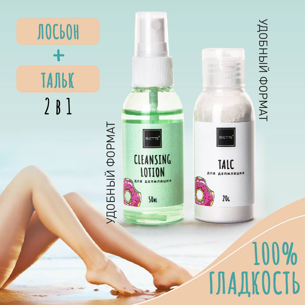 BIETTE Набор для шугаринга и восковой депиляции: Тальк 20 гр и Лосьон 50 мл / Бережное очищение и защита от раздражения