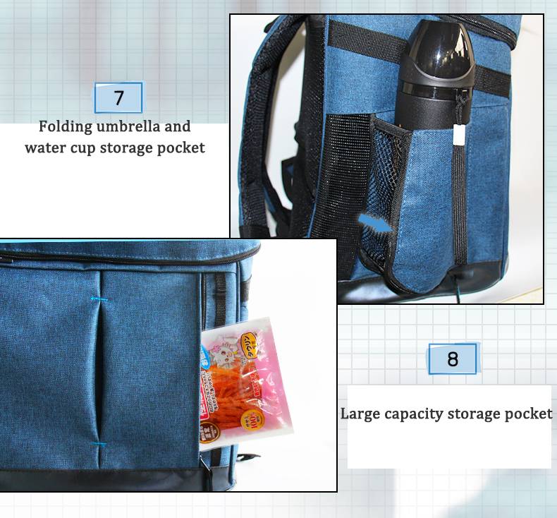 На передней части рюкзака есть большой карман для хранения, который может держать закуски, подгузники, полотенца и другие предметы.