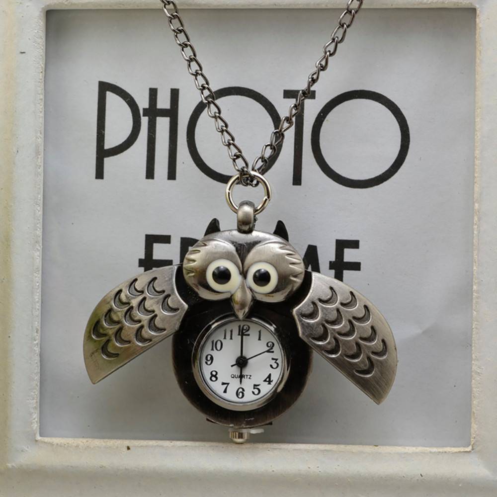Длинное ожерелье в стиле ретро с подвеской в виде совы, аналоговые карманные часы, подарок