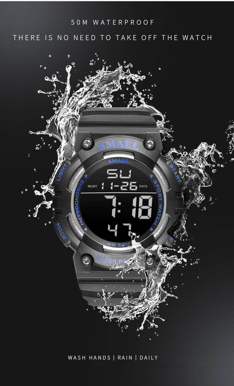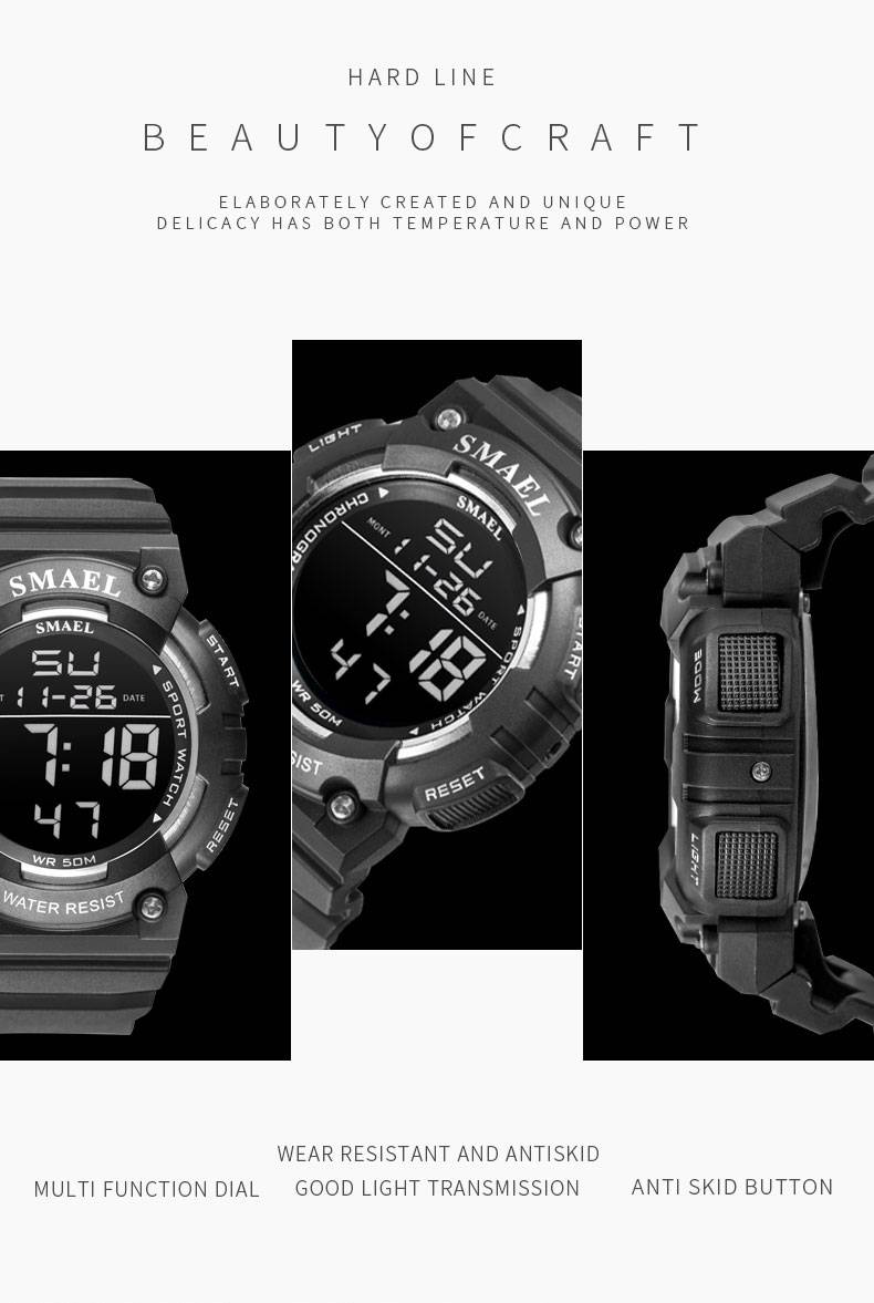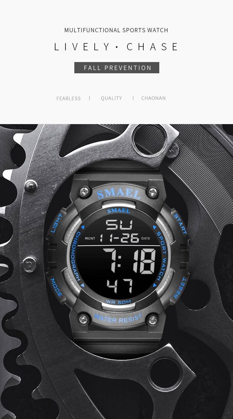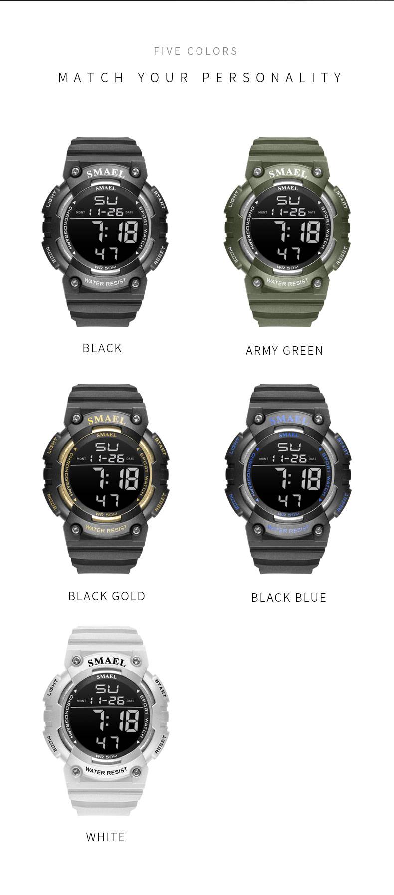 SMAEL мужские спортивные часы золотые наручные часы для контроля уровня сахара в крови с 50 м водонепроницаемый светодиодной подсветкой, часы, будильник, спортивный браслет 1539 цифровой часы