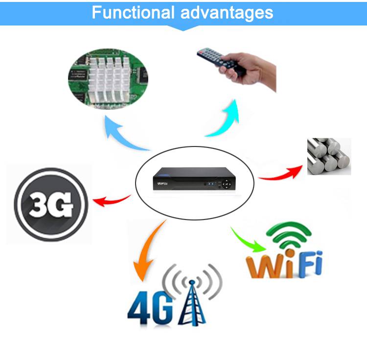 Наш видеорегистратор видеонаблюдения NVR имеет теплоотвод, металлический материал (длительный срок службы), пульт дистанционного управления, функцию 3G(4G), функцию Wi-Fi и так далее, гарантию качества.