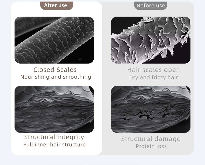1. Может быть использован на коже головы, чтобы позволить коже головы поглощать питательные вещества, чтобы помочь успокоить и питать корни волос. Восстанавливает блеск и мягкость волос. Ремонт обжига, повреждения при выдуве.
