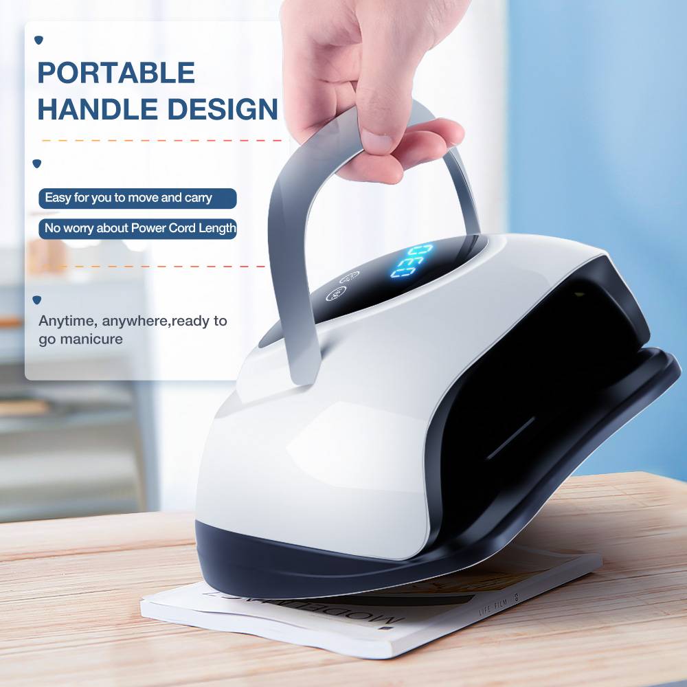 Этот продукт поможет вам высушить гели для ногтей. Есть 10s, 30s и 60s,Можно выбрать кнопки 99 с для настройки времени и режима низкого нагрева. Счетчик и функция хронометража позволяют удобно наблюдать за временем высыхания.