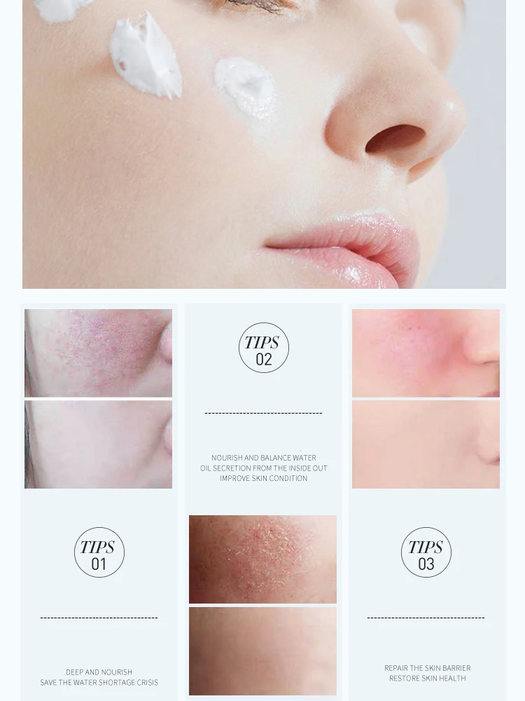 После использования лосьона, Возьмите соответствующее количество крема для восстановления, равномерно распределите на лице и шее, мягко массируйте и погладьте, чтобы он впитался.