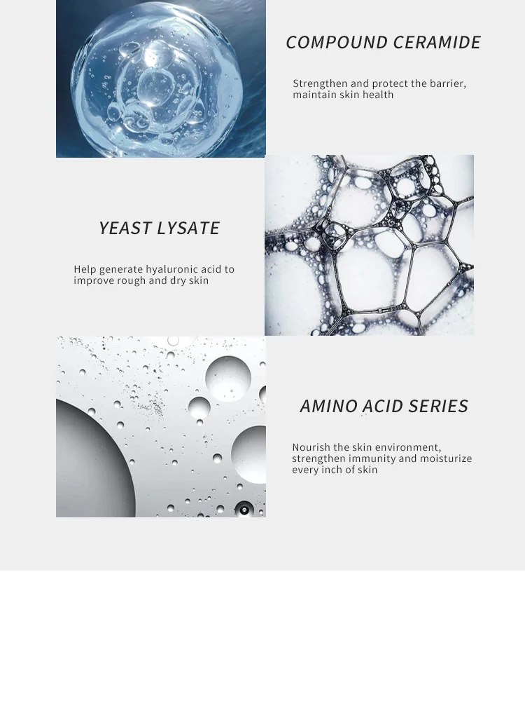 Вода, бутироспермумпарки, диметикон, сквалан, глицерин, бутандиол, Трегалоза, цетеариловый спирт, глицерилстеарат, behenyl спирт, тетрагидрометил пиримидин, оксиновая кислота, polysorbate-60 PEG/PPG/полибутиленгликоль-8/5/3 глицерин, Пег-100 стеарат, аммония акрилоил диметил Таурат ВП сополимер, продукт Asiaticoside, п-гидроксиацетофенон, керамид 3, керамид 6, Ксантановая резинка, токоферол (витамин е), керамид 1, дрожжевой экстракт лизата, Серин, глицин, аланин кислота, аспартическая кислота, ранговая кислота, леуцин, изолейцин, глутаминовая кислота, Пролин, 1,2-гексанол, фитостерол изостеарил димер линолейт, пантотеновая кислота спирт, карбомер, аргинин, аллантоин, склеротиумрольфss111, лецитин, 1,2-пентандиол, Токоферол ацетат, ПХА натрия, бисаболол, этилгексилглицерол, гиалуронат натрия, трикалий глициризинец, лауроил натрия лактиллактата, фесфеноспин, кератин, гидролизованный, феноксиэтин Примечание: эктоин соответствует тетрагидрометилпиримидину карбоновой кислоты в компоненте.