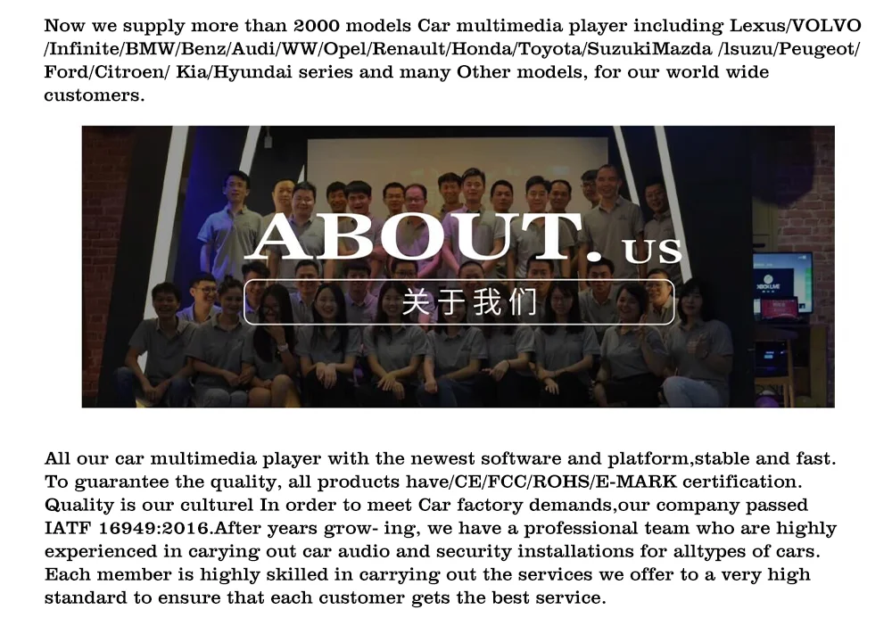 Автомобильный мультимедийный экран с вертикальным экраном-это новейший товар, он очень мягкий, функция очень мощная, но для некоторых автомобилей высокой версии не может поддерживать некоторые оригинальные функции автомобиля, это не проблема качества, только в разных странах и в разных вариантах автомобиля есть разные конфигурации, если у вас есть какие-либо вопросы, вы можете обратиться к нам за помощью.