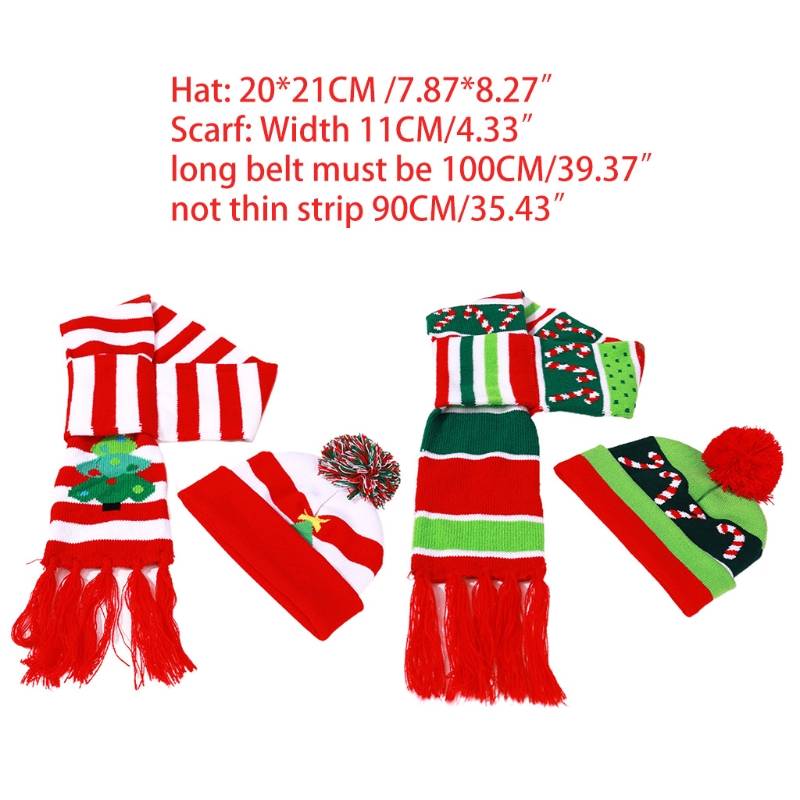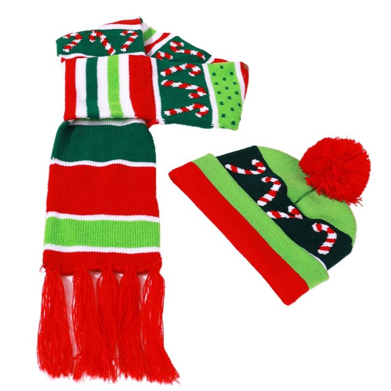 Комплект из 2 предметов: вязаная шапка и шарф. С рождественскими элементами; Верх шапки-Симпатичный помпон.