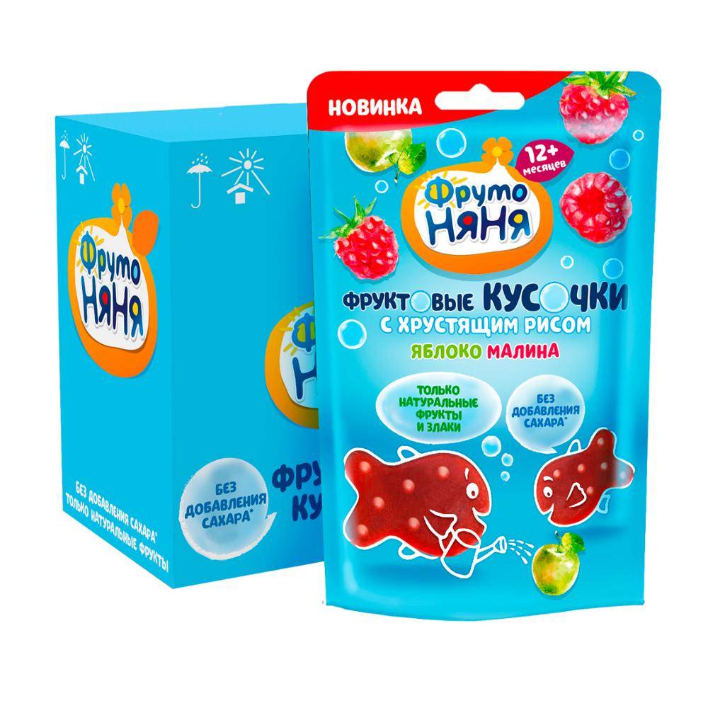 Новые фруктовые кусочки «ФрутоНяня» с хрустящим рисом — это натуральное и полезное фруктовое лакомство, в которое мы добавили хрустящий рис. Это сочетание обязательно понравится малышам! Оно приготовлено только из натуральных фруктов и злаков без добавления сахара. С фруктовыми кусочками «ФрутоНяня» можно баловать малыша без лишнего беспокойства.