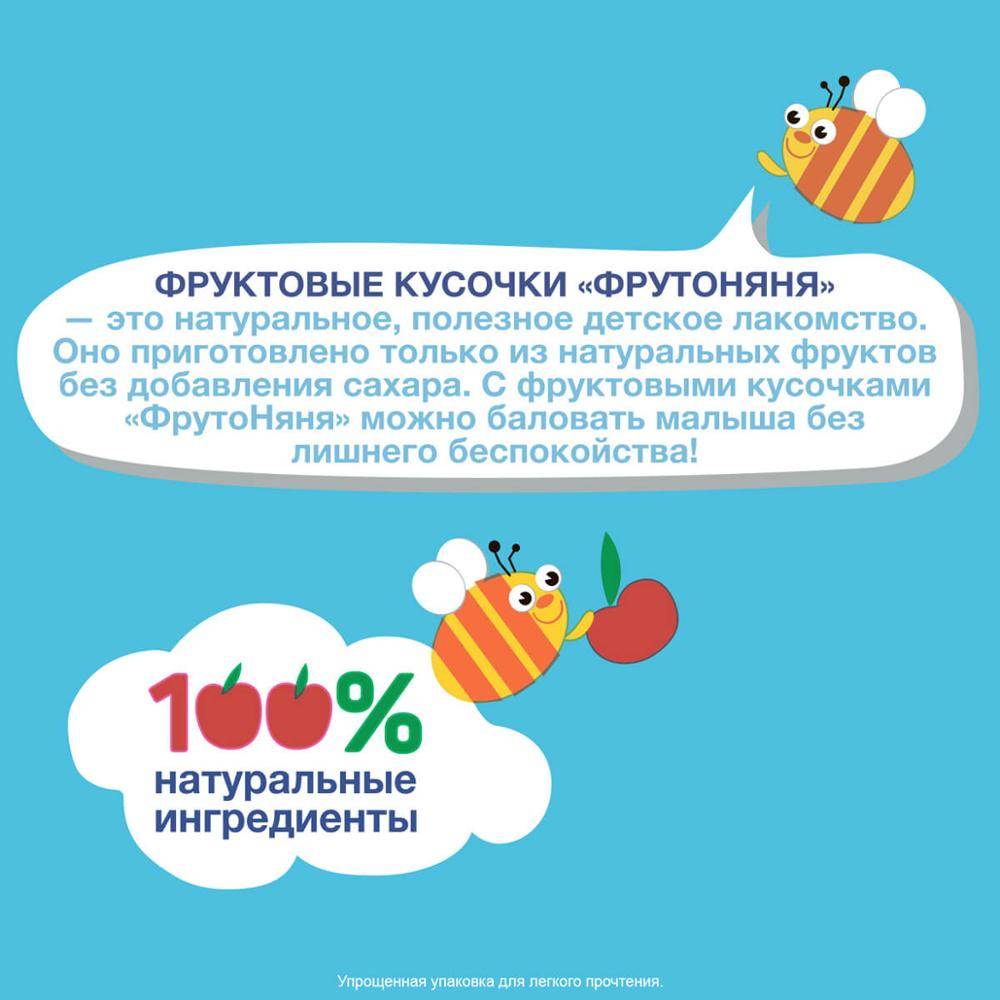 Фруктовые кусочки «ФрутоНяня» — это натуральное, полезное детское лакомство. Оно приготовлено только из натуральных фруктов без добавления сахара. С фруктовыми кусочками«ФрутоНяня» можно баловать малыша без лишнего беспокойства.