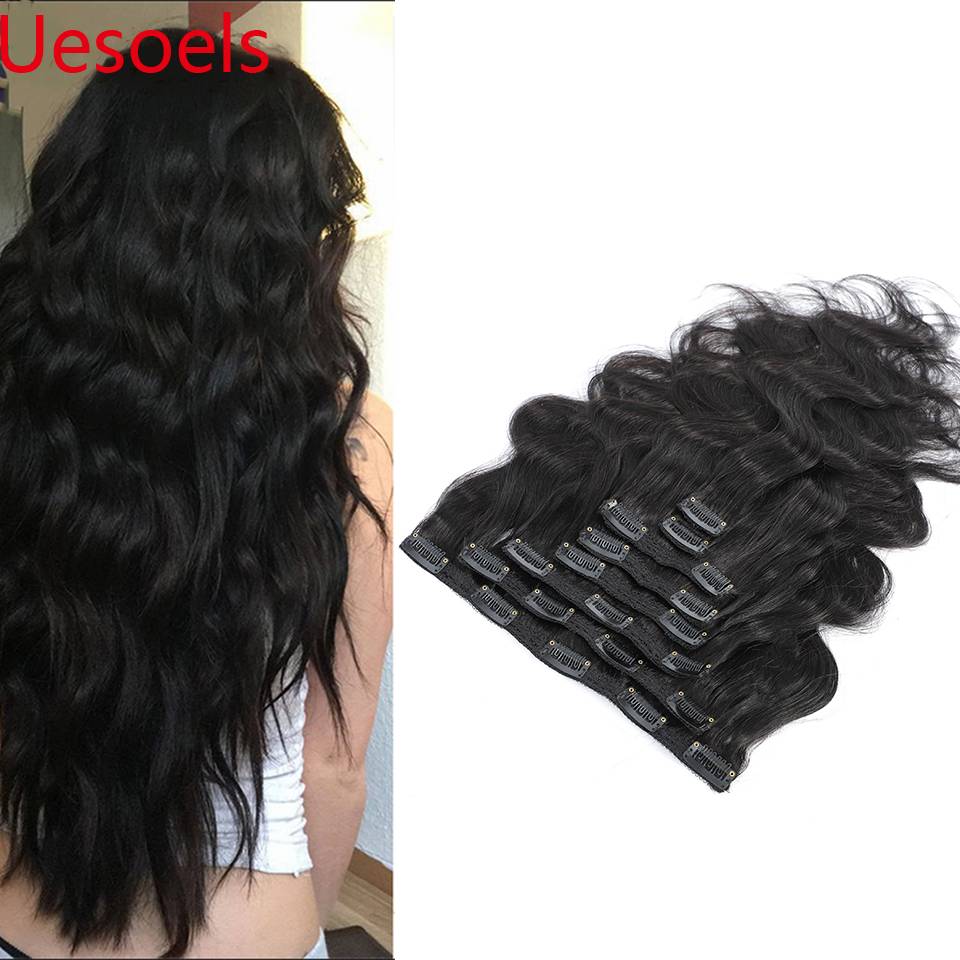Uesoels 100% Remy Малайзийский 120 грамм 8 шт./компл. 8 "-24" натуральный черный тело волна на всю голову зажимы человеческие волосы для наращивания для белых женщин
