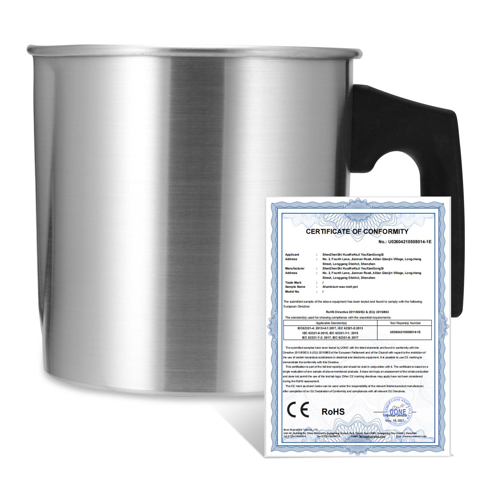 Корпус этого продукта-Толстая алюминиевая чашка. Для бесшовной алюминиевой конструкции горшка отличная теплопроводность помогает воску быстро остыть. Антипригарная и легко моется с мылом и водой.