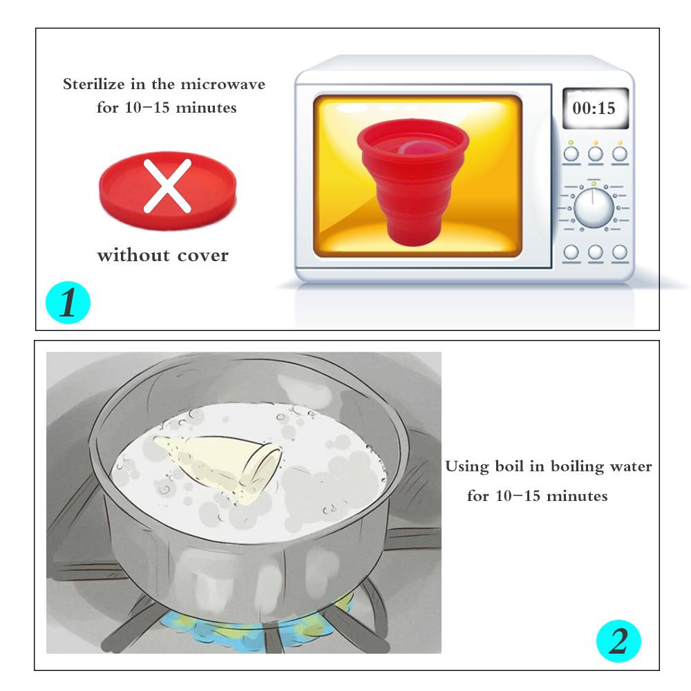 Менструальные чашки должны быть стерилизованы перед использованием, можно выбрать специальный Стерилизатор Дезинфекции, также может быть в кипящей воде дезинфекции