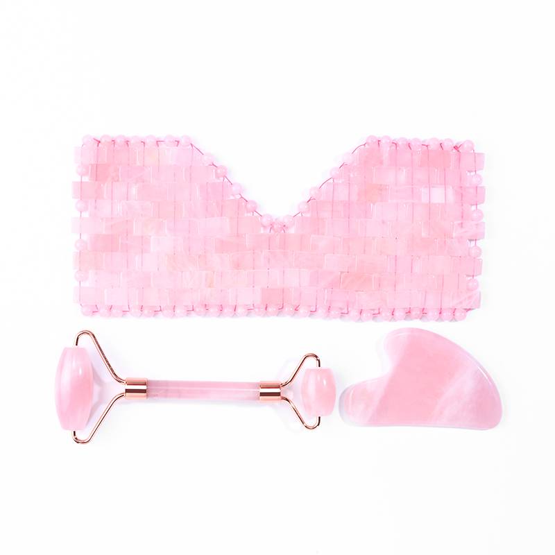 Натуральный розовый кварц ролик для лица гуаша скребок маска для сна набор ледяной Нефритовый камень тело глаз терапия Diy спа Релаксация уход за кожей Инструмент