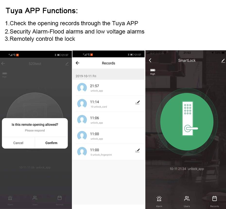 Методы разблокировки: приложение, IC карта, пароль, отпечаток пальца, ключ