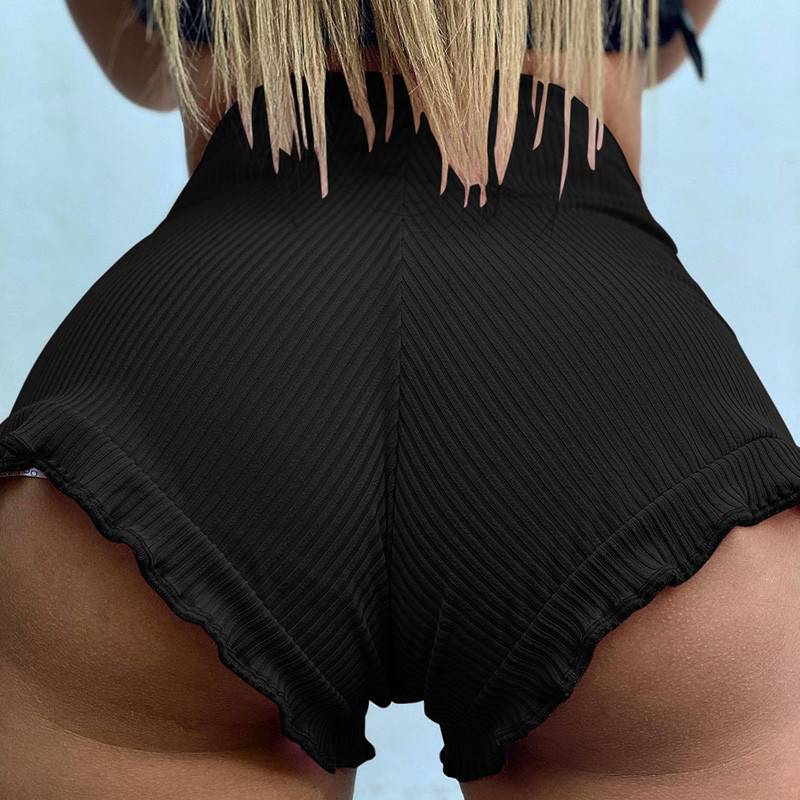 Женские короткие брюки в рубчик, однотонные короткие брюки трапециевидной формы с высокой эластичной талией и оборками