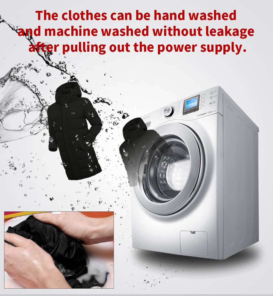 5. После извлечения источника питания, одежду можно мыть и стирать в стиральной машине без утечки.