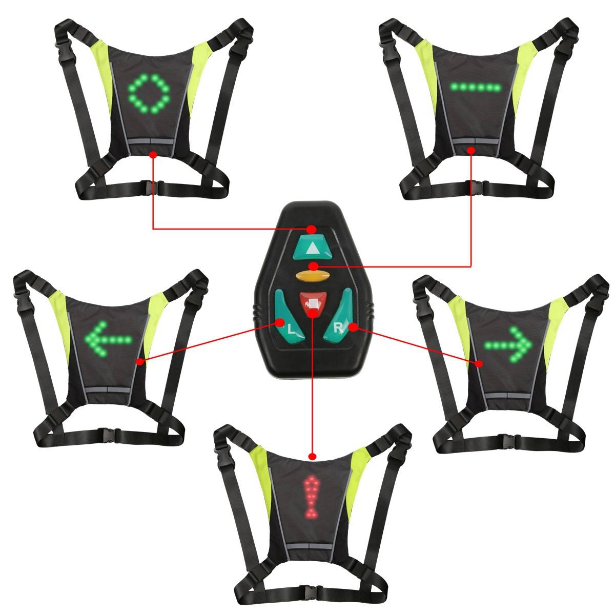 Высокая видимость и двойная защита: Есть семь светодиодный светильник на каждом плечевом ремне, которые обеспечивают вашу безопасность в случае, если автомобиль не включил его головной светильник s с полностью в темноте; Между тем, ремешки на плечо и на талии имеют повязку в полоску обеспечивает фантастическую видимость.