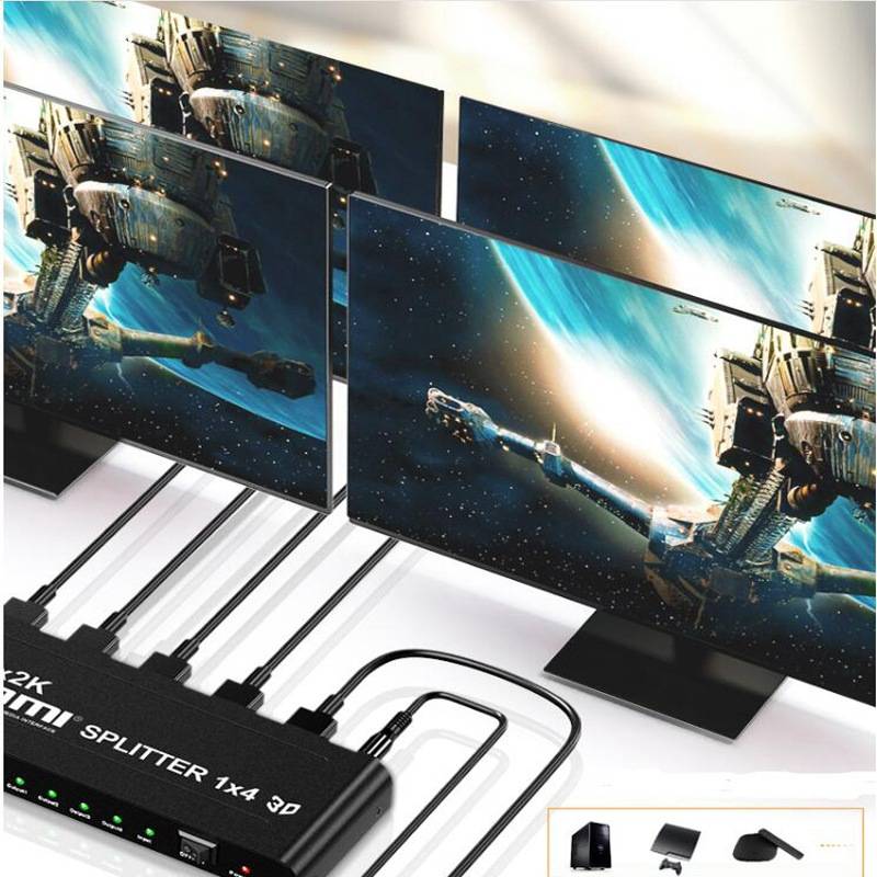 1 входной сигнал HDMI легко присваивается 4 HDMI, разрешение до 4k x 2k. Выводит тот же сигнал, что и входной сигнал, передавая изображения и аудио, не теряя качества. Поддерживает вход до 50 футов (15 метров) AWG26 HDMI стандартная длина кабеля, выход