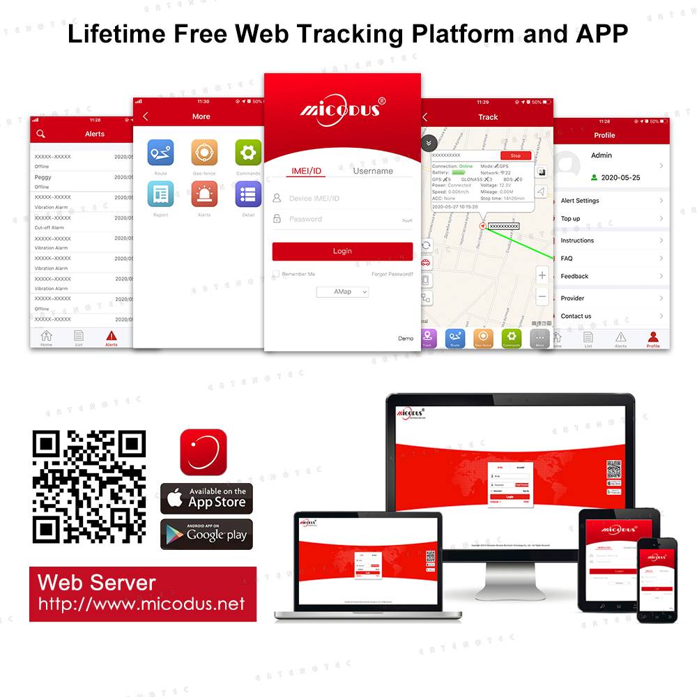 Мы можем запросить информацию о местоположении в реальном времени устройства с помощью этой платформы мобильное приложение (Micodus) и SMS.