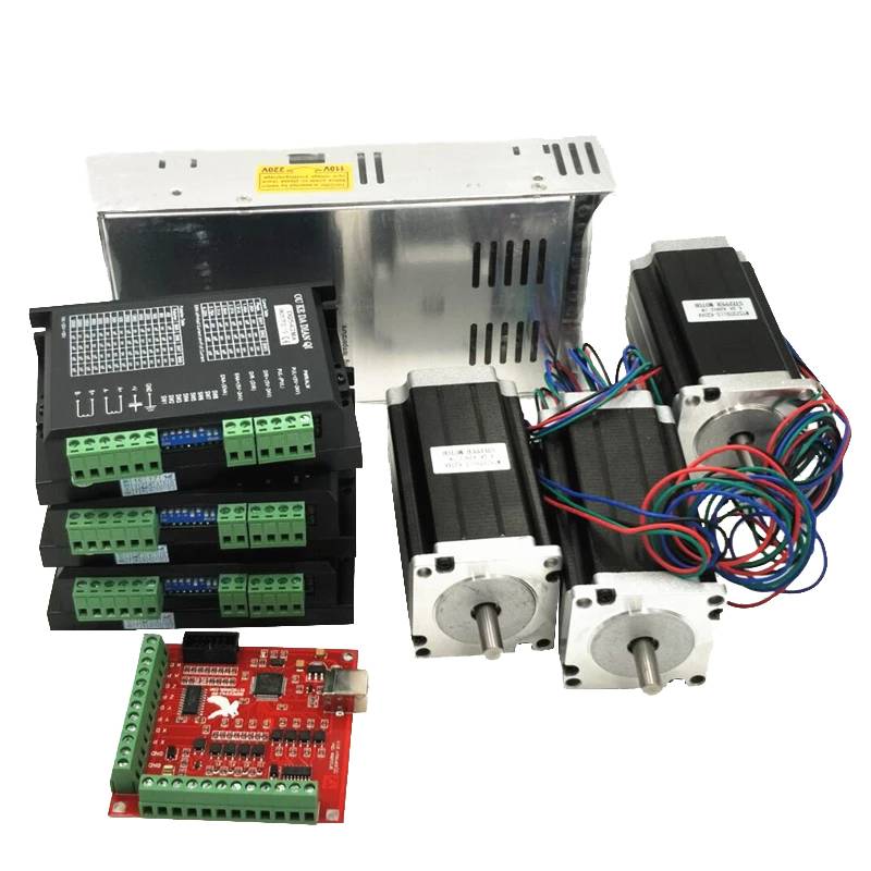 Включает: 1x36 В/350 А Вт импульсный источник питания 3 драйвера шагового двигателя TB6600 или DM542 или DM556 3 шаговых двигателя Nema23 425 унций (l112 мм) 1 x 4-осевая коммутационная плата 1 х параллельный кабель