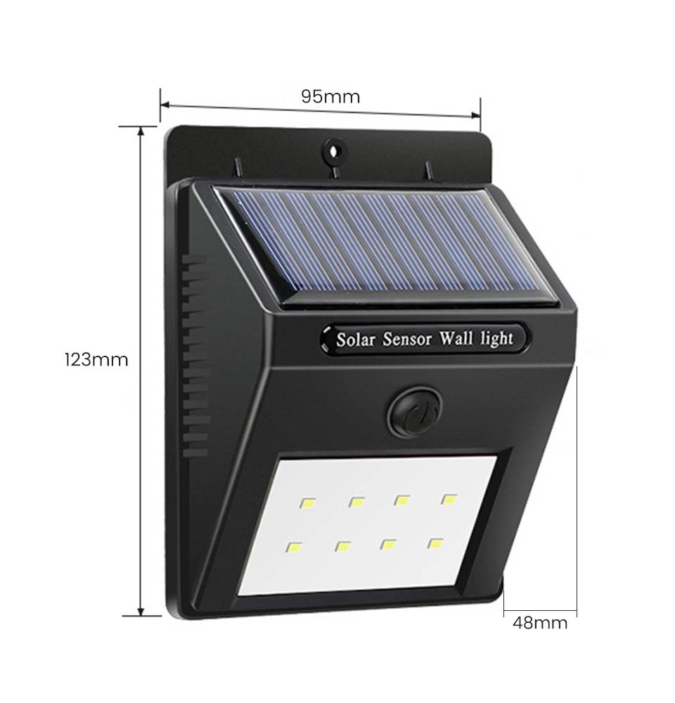 5: аккумулятор большой емкости, длительная работа, высокопроизводительные солнечные панели, зарядка в течение дня и освещение в ночное время. Параметр:-Время работы: 8-10 часов-Светодиодный светильник: 30 шт.-Батарея: 3,7 V 1200mAh-Панель солнечных батарей: 5,5 V 0,65 W-Индекс водонепроницаемости: IP 65-Метод индукции: Инфракрасная индукция человеческого тела-Время зарядки: 6-8 часов прямой солнечной энергии-Температура: -25 ℃ до 65 ℃ Размер продукта: 96*124*48 мм-Материал корпуса управления: ПП + поликристаллическая слишком энергетическая доска-Рабочая температура: от-25 ℃ до 65 ℃ Пожалуйста, обратите внимание!-Пожалуйста, поместите изделие под прямыми солнечными лучами и убедитесь, что солнечная панель не заблокирована.-Как правило, для первого использования требуется три часа сильного солнечного света, и, как правило, он может быть полностью подвержен 7 часам солнечного света Упаковочный лист:-1 шт. солнечный светильник-1 шт. Руководство пользователя-Винты-1 шт. переключатель