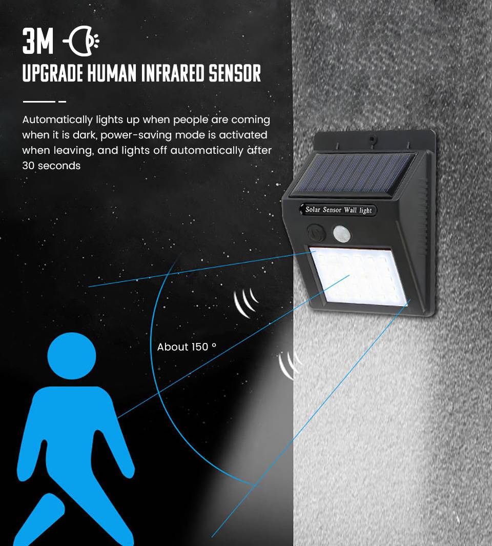 Введение режима: В условиях низкий светильник (ночью)1. Автоматическая активация в условиях низкого светильник, не требуется операция (активация переключателя требуется для первого использования) При ярком освещении (дневное)2. Яркость окружающей среды выше, чем 5 люкс, и светильник отключается, солнечные панели также будут продолжать заряжать Люди движущиеся огни в области обнаружения3. В тех случаях, когда человек входит в datection, при помощи инфракрасного излучения, светильник человеческого тела обнаружении, и лампа автоматически светильник или похода по магазинам. Люди покидают отряд4. После того, как человек покинет зону обнаружения в течение определенного периода времени, светильник автоматически погаснет. Преимущество:1: супер водонепроницаемый, даже если он находится под дождем снаружи, это не повлияет на все.
