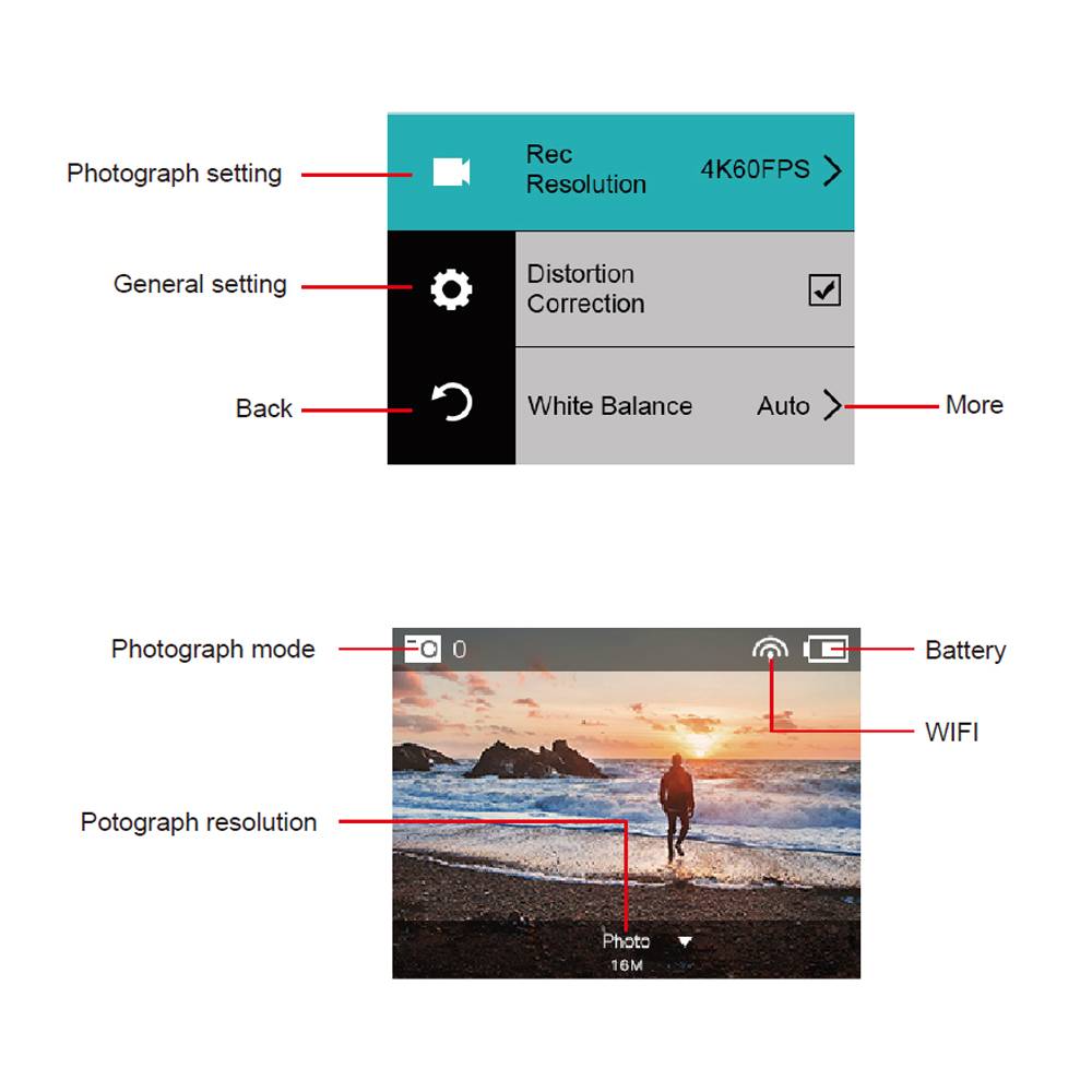 3. Поддержка: функция дистанционного управления/HDMI/Интервальная запись/Циклическая запись/тайм-лап видео/мгновенная фотография/режим непрерывной съемки/тайм скриншот/временной водяной знак/видео введение/Обнаружение движения
