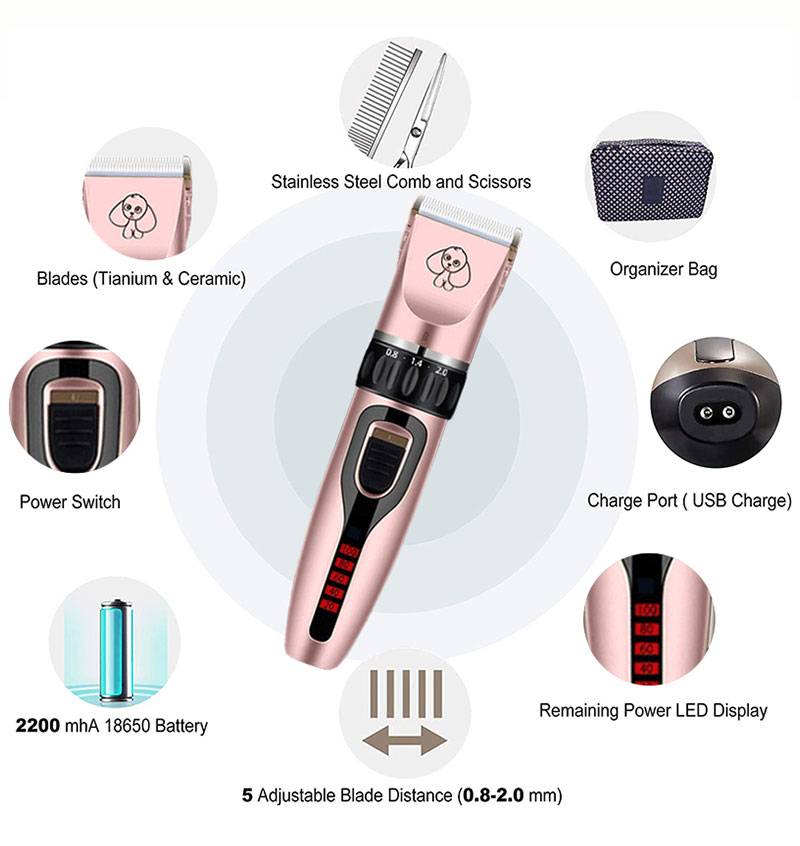 Беспроводной и ЖК-дисплей: Машинка для стрижки собак без косточек и позволяет избежать проблем с расточной проволокой. С четким ЖК-дисплеем питания, который вы можете легко увидеть, сколько энергии осталось.