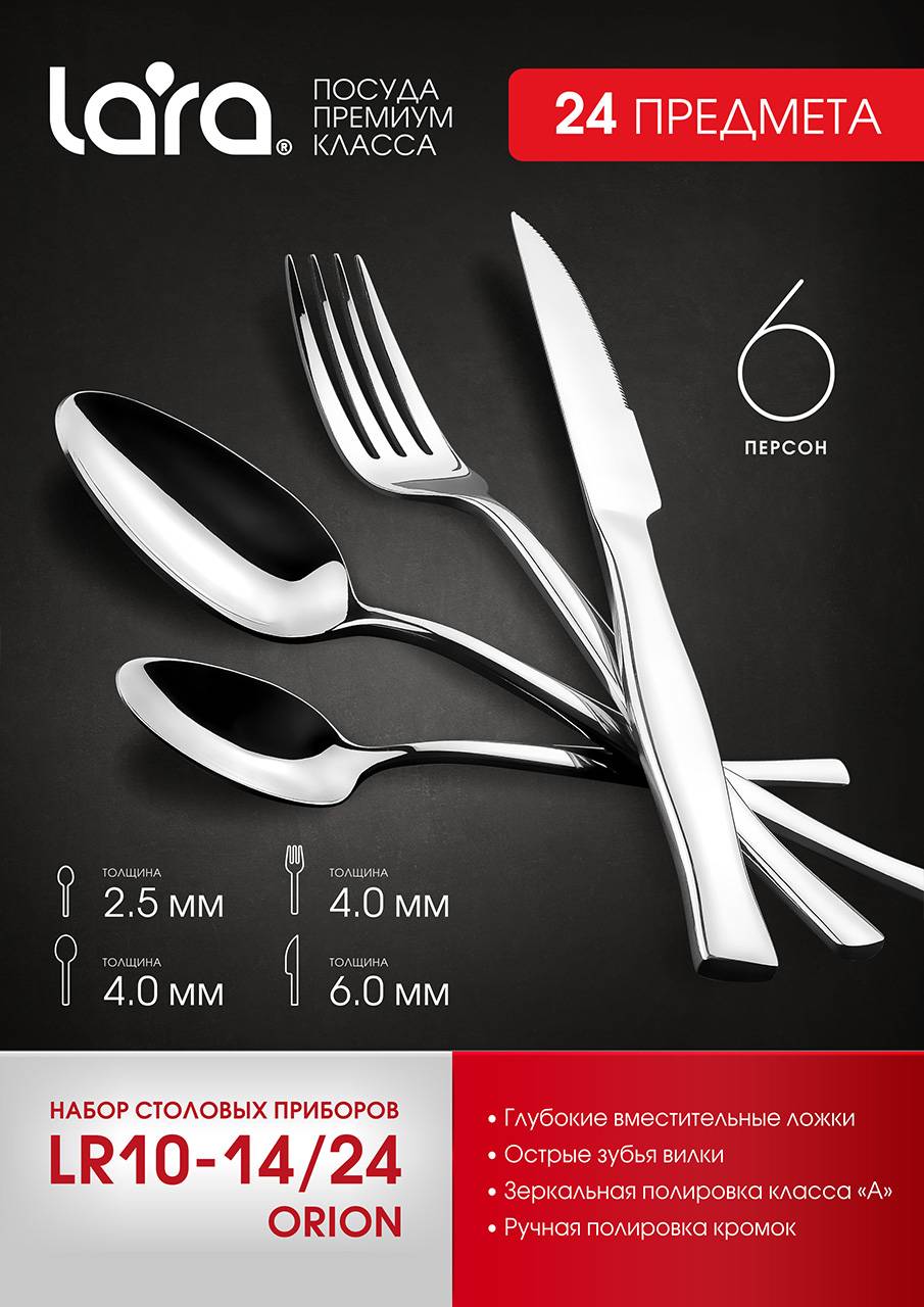 Столовые приборы LARA изготовлены из стали с 18-процентным содержанием хрома и имеют зеркальную полировку класса "А".